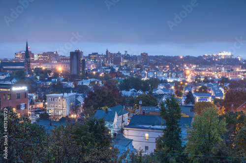 Naklejka premium USA, Maine Portland. City skyline from Munjoy Hill at dusk.