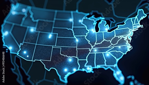 Fototapeta premium USA Map with Glowing States.