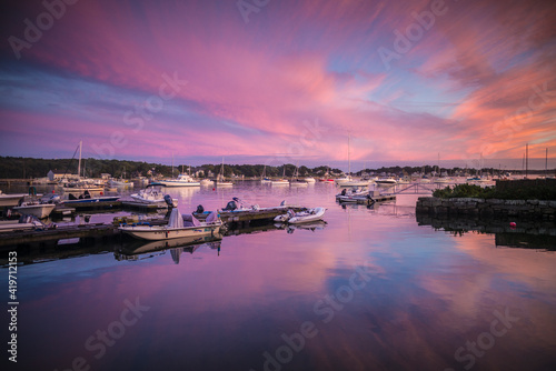 © Danita Delimont, Fototapeta premium USA, Massachusetts, Cape Ann, Gloucester. Annisquam Harbor at sunset.
