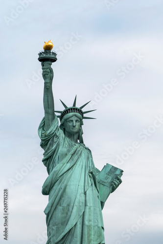 Fototapeta premium USA, New York - May 2019: Statue of Liberty, Liberty Island against an...