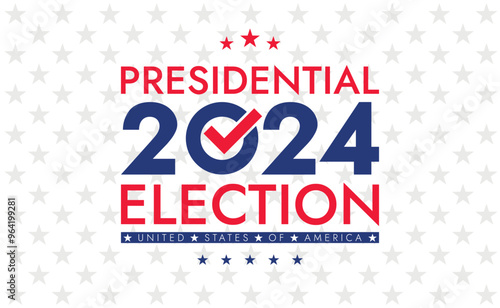 © lukbar, Fototapeta premium USA 2024 Presidential Election background with American flag colors design. Election event banner, card, poster, template, voting communication, background. Vote day, November 5. Vector illustration.