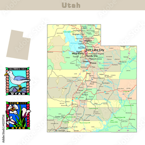 © IndianSummer, Obraz premium USA states series: Utah. Political map with counties