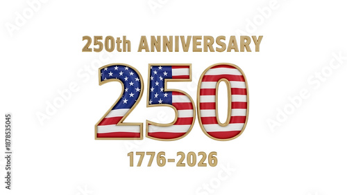 © Arif, Obraz premium USA 250th Anniversary Semiquincentennial Celebration Typography with American Flag Pattern , Transparent Background