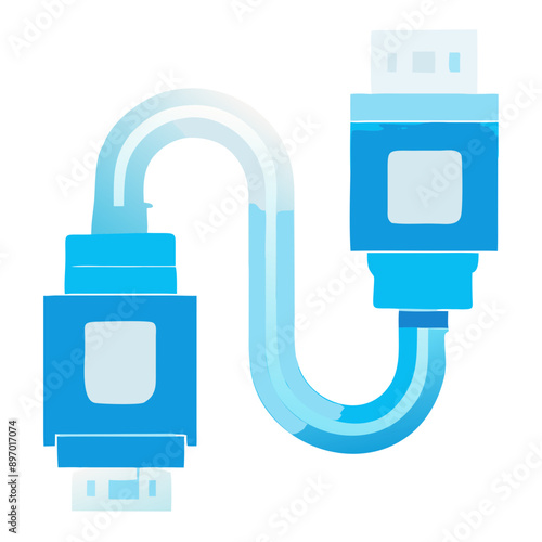 © MaryKovs, Fototapeta premium USB Cable and Connector Icon in Blue with Digital Data Flow Representation