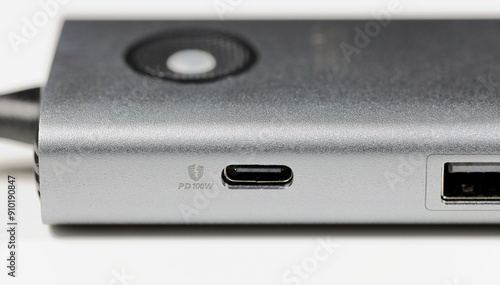 © MMxeon, Obraz premium USB Type-C with PD (Power Delivery) port on on docking station of new model premium notebook computer.