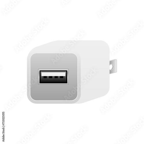 © Yuwaii design, Obraz premium 白いUSB充電器_USBタイプA 2.0 1ポート
