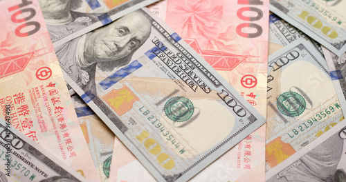 Obraz premium USD and HKD paper banknote