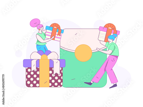 Naklejka premium Use red envelopes to attract new customers and promote activity. Flat vector character concept illustration