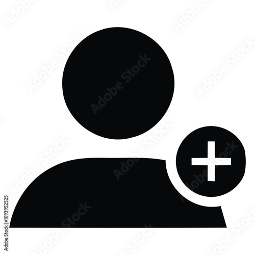 © Black, Fototapeta premium User Add icon black color.