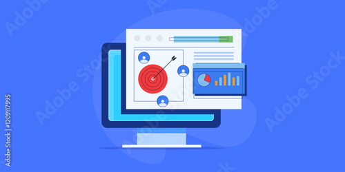 Fototapeta premium User behaviour tracking technology, custom audience targeting digital advertising e-business solution vector banner.