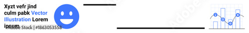 Fototapeta premium User feedback, data visualization, customer satisfaction, analytics, business monitoring, performance tracking. happy face linked to bar and line graphs. Data visualization and user feedback concept