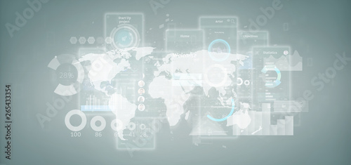 © Production Perig, Obraz premium User interface screens with icon, stats and data 3d rendering