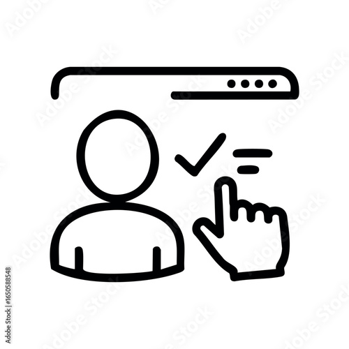 © BraveSpirit, Obraz premium User profile icon with checkmark and hand cursor