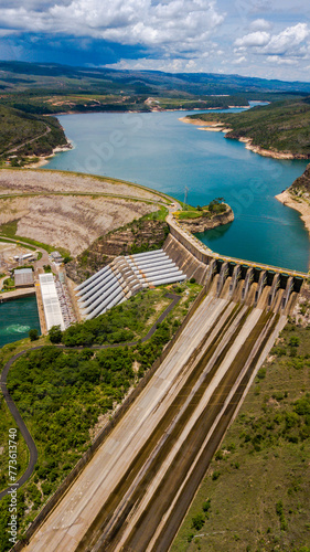 Naklejka premium Usina Furnas Energia Drone Hidrelétrica Barragem Lago Represa Turbinas...
