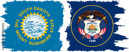 © gladder, Fototapeta premium Utah and South Dakota states grunge brush flags connection, vector