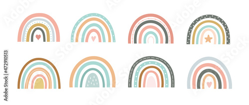 Fototapeta premium Сute pastel hand-drawn baby rainbows