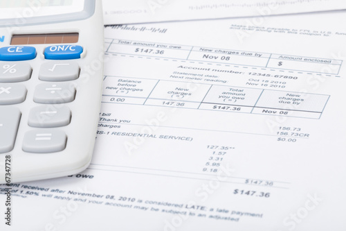 © niyazz, Obraz premium Utility bill and calculator - studio shot