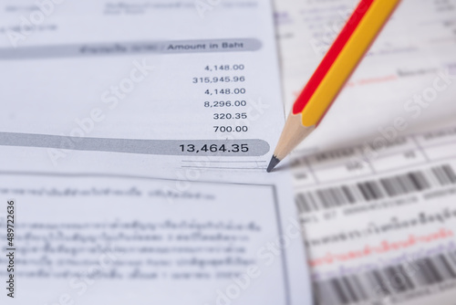 Obraz premium Utility energy bill with pencil blurred background