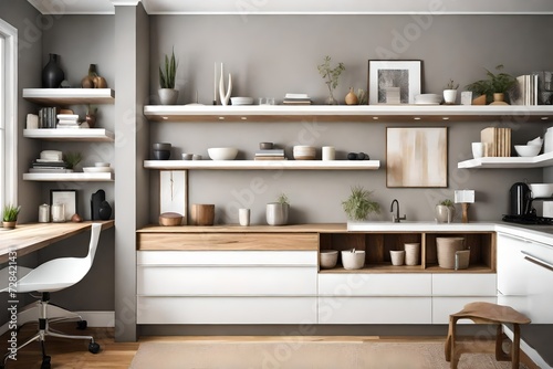 Fototapeta premium Utilize vertical space with floating shelves for a chic and organized display