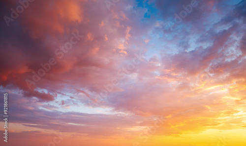 © Leonid Tit, Obraz premium Utterly spectacular sunset with colorful clouds lit by the sun.