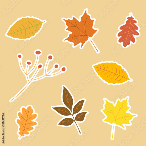 © Kateliusto, Obraz premium Аutumn leaves stickers set