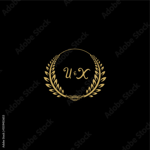 Fototapeta premium UX beautiful feminine and elegant wedding monogram initial logo with circle floral gold