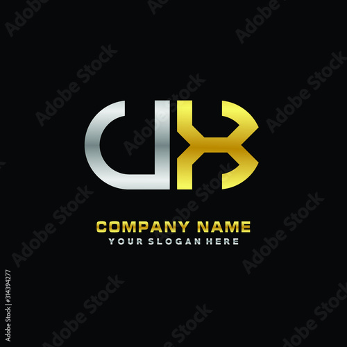 © MUCHAMMAD, Obraz premium UX initial letters looping linked oval elegant logo silver, gold
