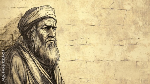Fototapeta premium Uzziah Lives in Isolation Due to His Leprosy, Ruling from a Separate House, 2 Kings Biblical Illustration, Bible Wall Art, Beige Background