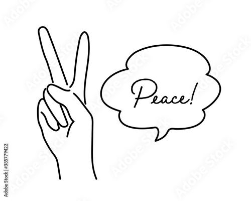 Obraz premium 手描きのピースサインのイラスト/手/ジェスチャー/チョキ/vサイン/2/かわいい/おしゃれ/女性
