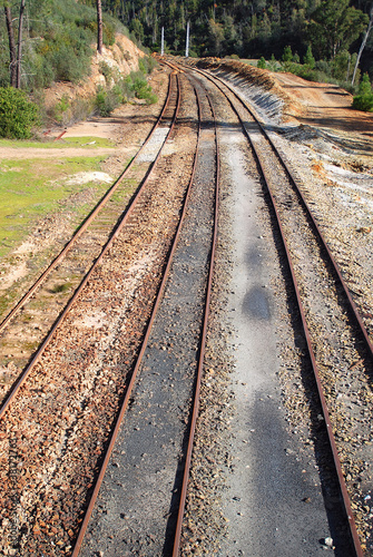 © MIKYIMAGENARTE, Fototapeta premium VÍAS O RAÍLES DE UN TREN. TRANSPORTE FERROVIARIO