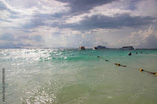 Fototapeta premium Vacaciones exóticas y relajación en la playa del Océano Índico en Tailandia, papel tapiz, fondo