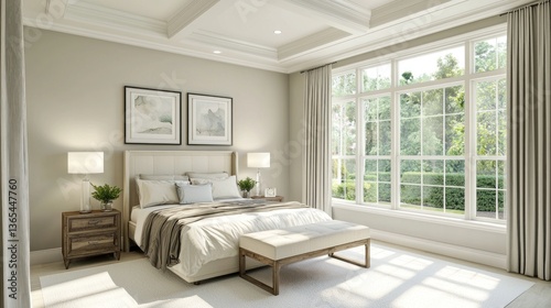 © Bunlong, Fototapeta premium Vacant bedroom space ready for furnishing with large windows