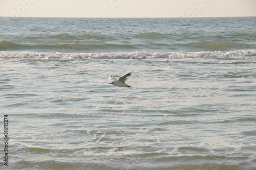 Fototapeta premium Vacation on sea with waves and seagulls