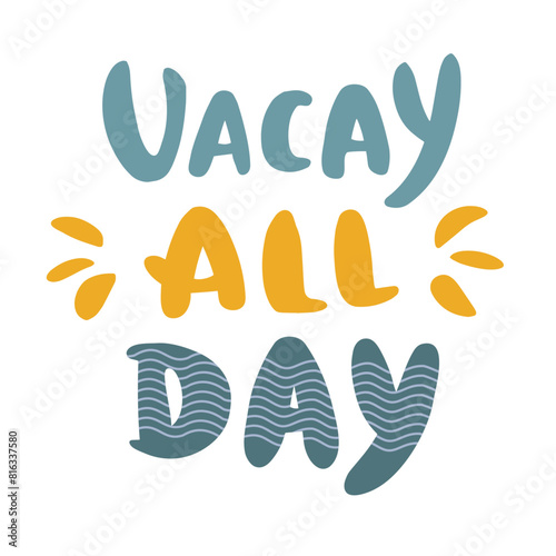 © Olga, Obraz premium 'Vacay all day' phrase. Summer holiday. Inspirational hand drawn lettering.