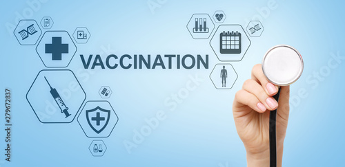 © WrightStudio, Fototapeta premium Vaccination Medical Healthcare concept of virtual screen.
