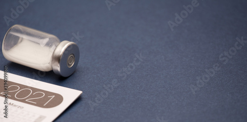 © Fernando, Naklejka premium vaccine canister, with calendar 2021, blue background