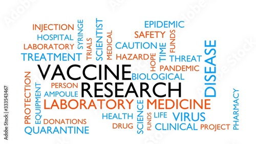 © ommbeu, Obraz premium Vaccine research & development word tag cloud. 3D rendering, white variant