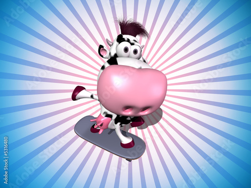Fototapeta premium Vache en skateboard