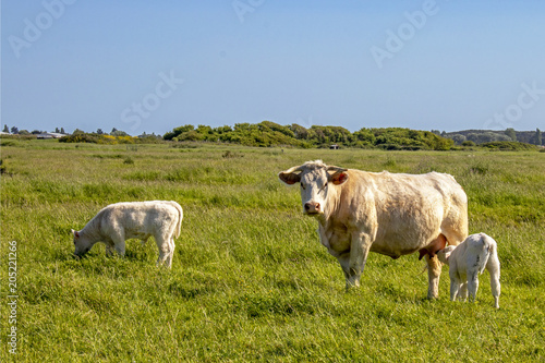 © guitou60, Obraz premium Vache nantaise et veaux en pâture