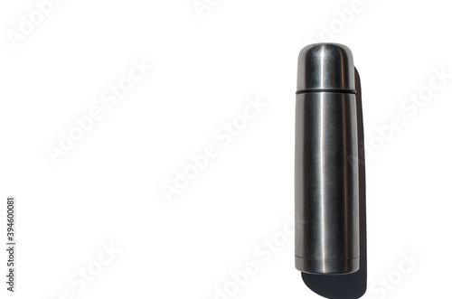 © Sergio, Fototapeta premium Vacuum aluminum thermos isolated on a white background. Top view, copy space