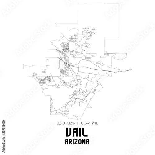Fototapeta premium Vail Arizona. US street map with black and white lines.