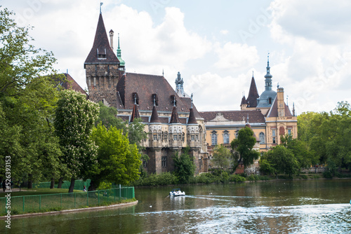 Obraz premium Vajdahunyad castle and lake in Budapest. Hungary.