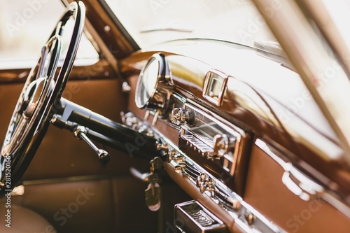 Naklejka premium Valencia, Spain - October 14, 2018: Interior of a luxury vintage car.