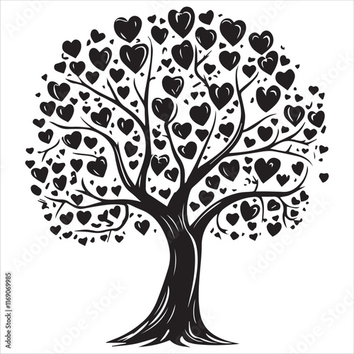 Obraz premium Valentin day Vector tree silhouette isolated on white