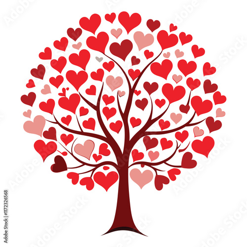 © SP Technology, Fototapeta premium valentine card with hearts tree icon silhouette vector illustration