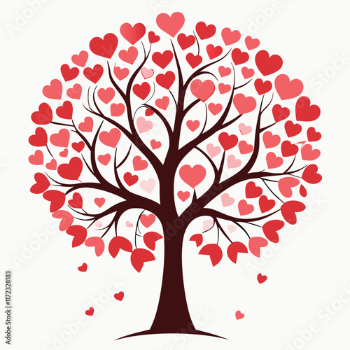 © SP Technology, Fototapeta premium valentine card with hearts tree icon silhouette vector illustration