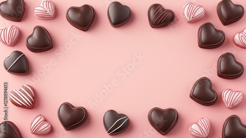 © EZPS, Fototapeta premium Valentine chocolate heart on rose petals, macro, still life.