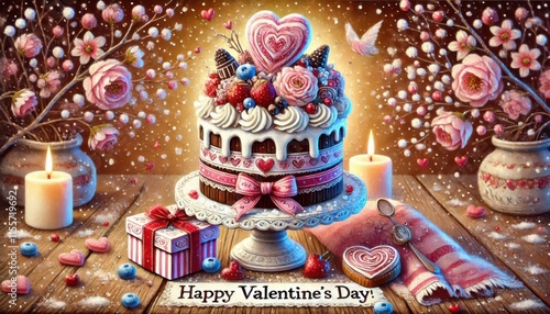 © Tatiana, Naklejka premium valentine day cupcakes content created with generative AI software.