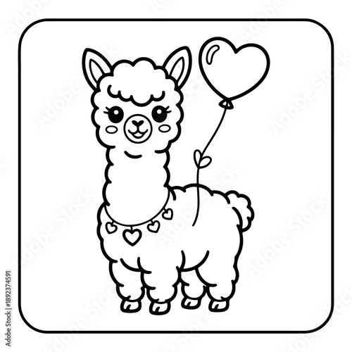 Obraz premium Valentine Day Llama Coloring Book