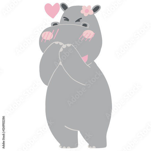 Obraz premium Valentine hippo theme. Cute hippo character expressing love and joy.